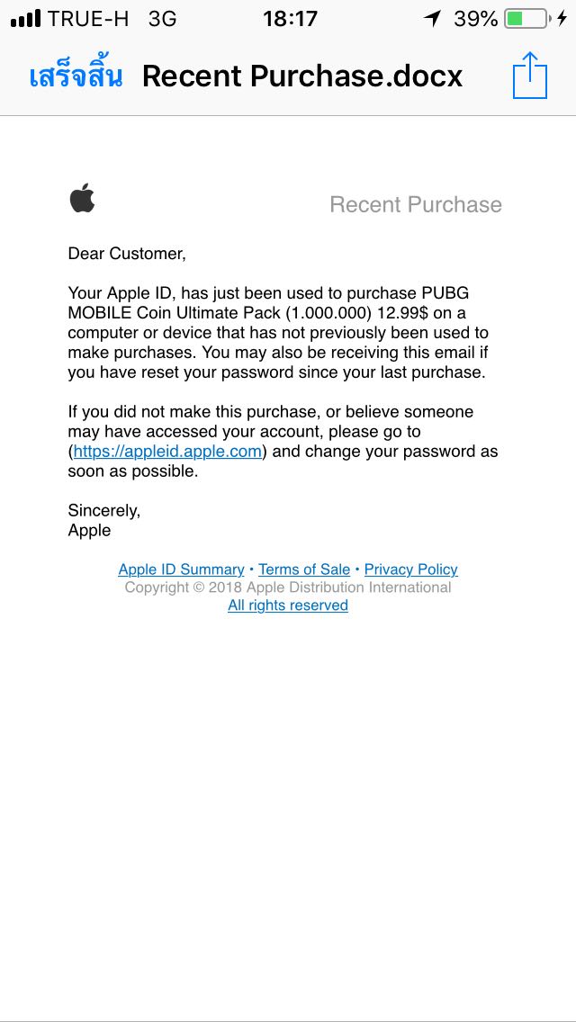[Apple]ไม่ได้ซื้อเกมนี้ หรือซื้อของในเกม แต่ส่ง e-mail มาแบบนี้ คืออะไรครับ