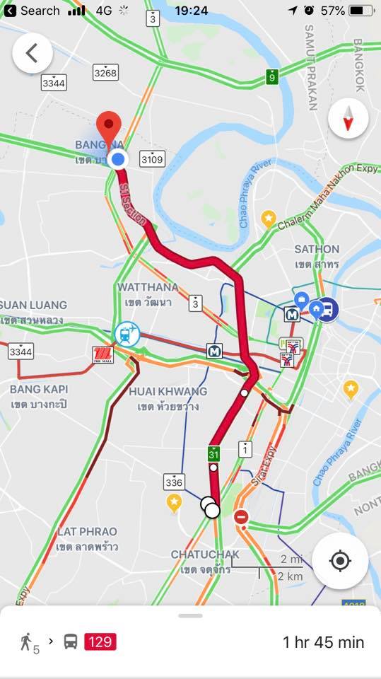 ผมเลยได้นั่ง 129 ตาม google maps เลย ซึ่ง จากที่ใช้ตลอด เวลาในแอปมันเว่อกว่ามากๆ และพบได้ค้นพบเส้นทางใหม่นั่นคือ