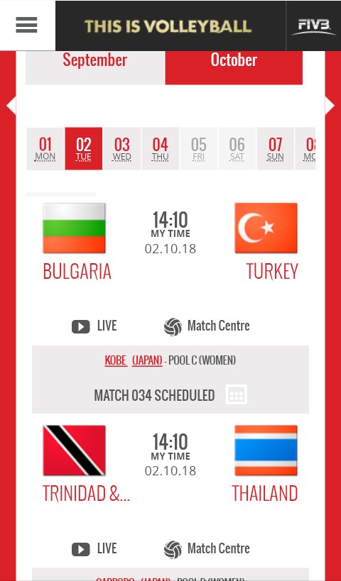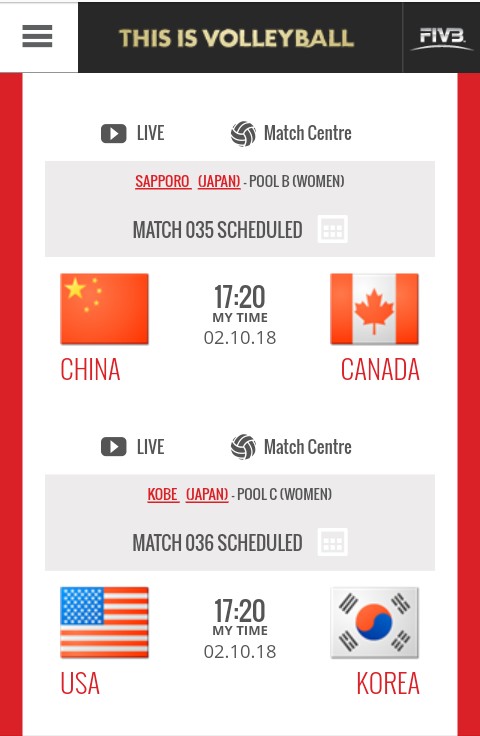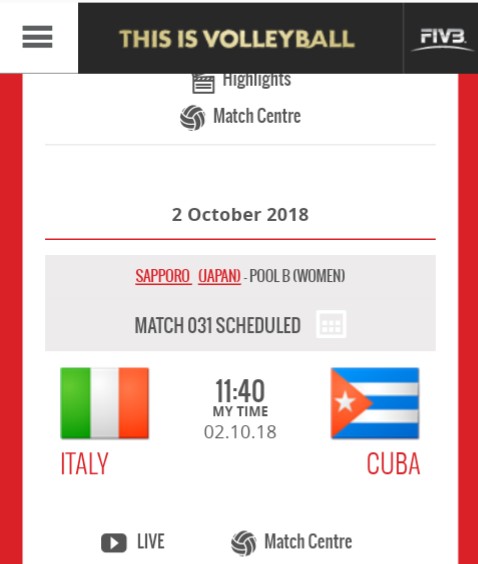โปรแกรมการแข่งขันวอลเลย์บอลหญิงชิงแชมป์โลกทุกคู่