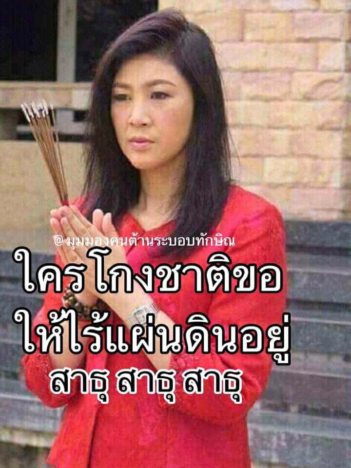 และนายกฯปูก็ไม่มีส่วนในการโกงการจำนำข้าว ฉะนั้นอยากให้ท่านนายกสาปแช่งให้คนโกงชาวนาพร้อมญาติโกโหติกา ให้มีอันเป็นไปทั้งตระกูลไม่ได้ผุดไม่ได้เกิดทั้งอาชีพและการเมืองด้วยเถิดสาธุ โอมเพี้ยง