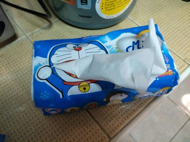 อันนี้คือบ้านไหนก็ต้องติดไว้ค่ะ เช็ดมือ เช็ดหน้าได้หมด เพราะราคาถูก คุณภาพกระดาษโอเค ไม่บาดหน้า ไม่รู้สึกระคายเคือง ลายโดเรม่อนน่ารักกรุบกริบ ทิชชูนี่ต้องรีวิวไรมากมายหรอคะ คือมันก็ดี ต้องซื้อซ้ำตลอดปีตลอดชาติ แค่อยากบอกว่าราคามันไม่แพง ซื้อได้แบบไม่ต้องคิดมาก เป็นอันรู้เรื่อง