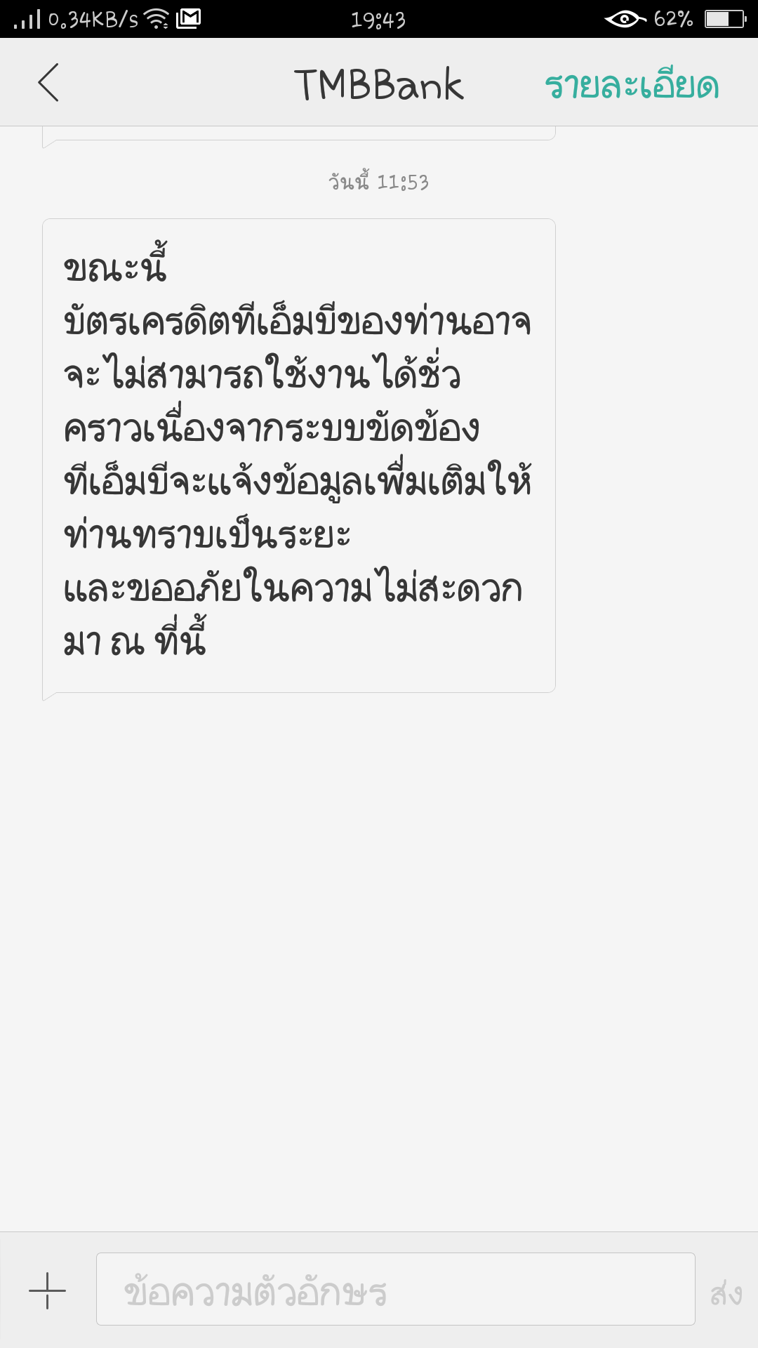 TMB ส่งข้อความแจ้งมาว่า.. บัตรเครดิตของท่านอาจจะไม่สามารถใช้งานได้ชั่วคราว มีใครได้ข้อความแบบนี้บ้างคะ??