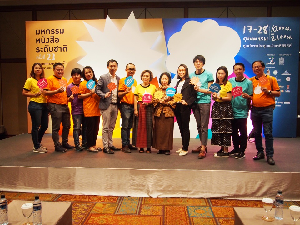 สมาคมผู้จัดพิมพ์และผู้จำหน่ายหนังสือแห่งประเทศไทย ประกาศความพร้อมจัด “มหกรรมหนังสือระดับชาติ ครั้งที่ 23”และ “เทศกาลหนังสือเด็กและเยาวชน ครั้งที่ 12 เริ่มวันพุธที่17ตุลาคม2561ณ ศูนย์การประชุมแห่งชาติสิริกิติ์ ภายใต้แนวคิด “อ่านออกเสียง” ชมนิทรรศหนังสือสาบสูญ 3018/ นิทรรศการสำหรับเด็กและครอบครัวWonder Land ดินแดนค้นพบตัวตน และนิทรรศการเยาวชน ท่องโลกมหัศจรรย์ของ HOSODA MAMORU…จากภาพฝันสู่แผ่นฟิล์ม เป็นต้น พร้อมเวทีเสวนาและกิจกรรมน่าสนใจอีกมากมายตลอด12 วัน โดย นางสุชาดา สหัสกุล นายกสมาคมผู้จัดพิมพ์และผู้จำหน่ายหนังสือแห่งประเทศไทย นายคธาวุฒิ เกนุ้ย อุปนายกฝ่ายในประเทศ สมาคมผู้จัดพิมพ์และผู้จำหน่ายหนังสือแห่งประเทศไทย นายกิตติพล สรัคคานนท์ ผู้จัดทำนิทรรศการ “หนังสือสาบสูญ 3018” และนางสาวอรุณี อุนหะวรากร นักวาดเจ้าของภาพน่ารัก “การเดินทางของหมูป่า” จากเพจ SISIDEAร่วมสนทนาในงานแถลงข่าวซึ่งจัดขึ้นเมื่อวันอังคารที่ 2 ตุลาคม 2561ณ ศูนย์การประชุมแห่งชาติสิริกิติ์ โดยมีผู้ร่วมงานอย่างคับคั่ง
