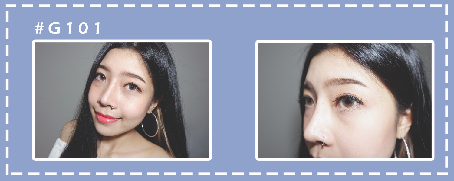 เบอร์ G101 ในเบอร์นี้ก็ยังมีความเป็นธรรมชาติอยู่แต่มีชั้นขนตาที่หน้าขึ้นมา แต่โดยรวมก็ยังได้อยู่กับลุคแบ๊วๆ หวานๆ โอ๊ยยยยยยยยฟิน