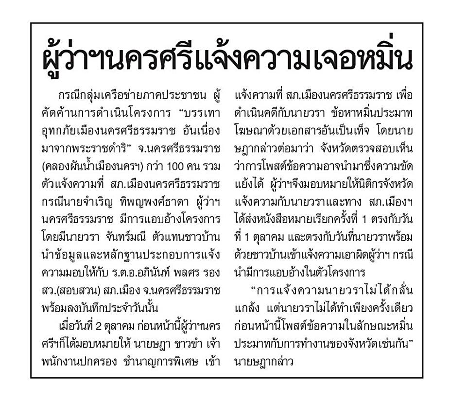 เรื่องเล่าจากวงหวาก... หยิกแกมหยอก กับข่าวผู้ว่านครฟ้องชาวบ้าน..