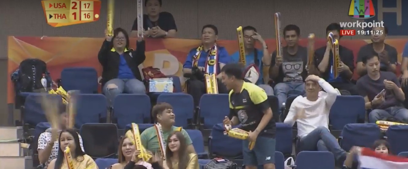 เวลาไทยแข่งไม่ว่าสนามไหน กีฬาอะไร เสียงเชียร์จะมีตลอด แต่พอดูคู่อื่นแข่ง เห็นหลายคู่ ดูกันแบบเงียบๆ อย่างคู่นี้ มีแต่เสียงนักกีฬา https://www.youtube.com/watch?v=Ssj5jlDEcLE ขอบคุณ กองเชียร์ไทย