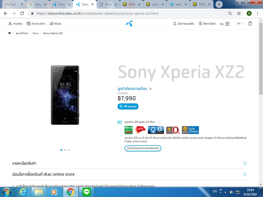 สำหรับเครื่อง Sony Xperia XZ2 ราคาพิเศษ 7,990 บาท จำหน่ายเฉพาะช่องทาง dtac online store ค่ะ หาก คุณEfSaSh สนใจ สามารถสั่งซื้อที่ลิงก์นี้ได้เลยนะคะ https://dtaconline.dtac.co.th/smartphones-tablets/sony/sony-xperia-xz2.html