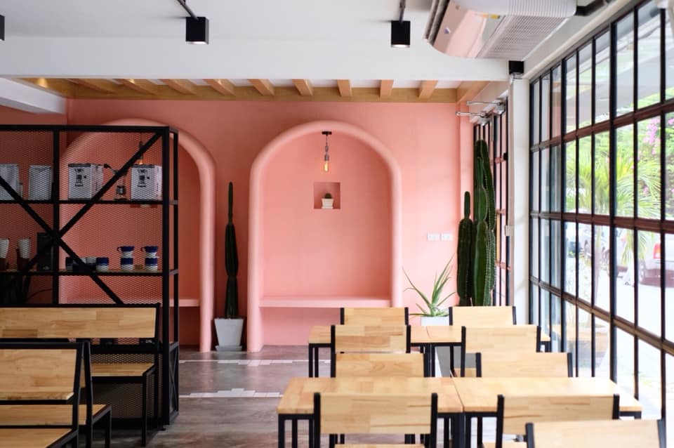 แต่ข้างในก็ตกแต่งสีหวาน ชมพูพาสเทลน่ารักน่าหยิกจนมั่นใจว่าสาวๆ สายคาเฟ่ฮอปปิ้งน่าจะหลงรักที่นี่เหมือนๆ กับเรา