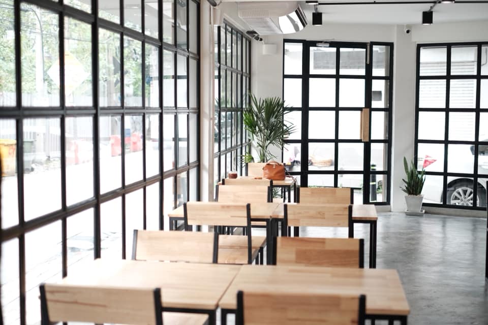 ในร้านมีพื้นที่กว้างขวาง แม้จะเป็นร้านที่ถูกกั้นจากรอบนอกด้วยกระจกใสทั้งสองด้าน