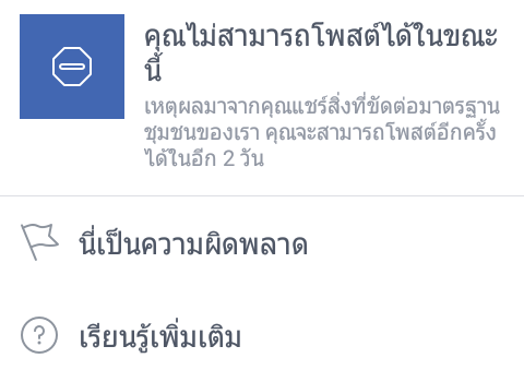 facebook ปิดกั้นไม่ให้โพสต์ลิงก์ website #มาตรฐานชุมชน