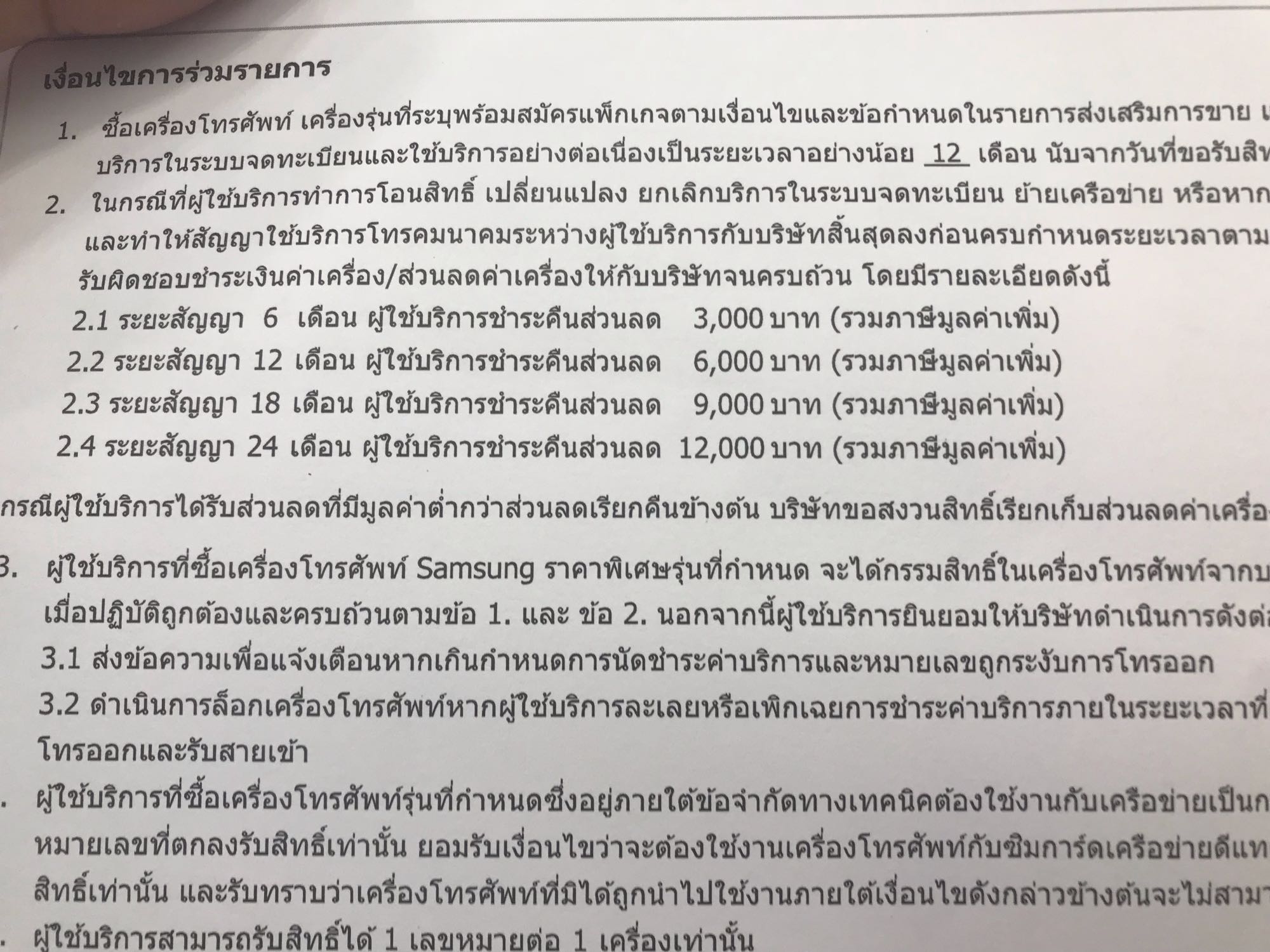 ตอนซื้อเจ้าหน้าที่บอกแค่ว่าต้องติดสัญญา. ต้องใช้โปร 899 เป็นระยะเวลา 12 เดือน