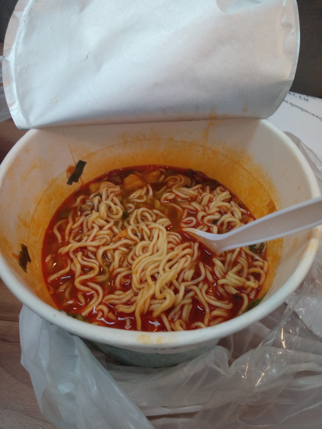 ผมเห็นราคาติดป้าย 27 บาท เลยลองดู พอแกะซองกดน้ำร้อนใส่ ซ่อมก็ไม่มีแถมให้ แล้วก็ไปคิดเงิน โอ้แม่เจ้า😧 ทำไมราคาไม่ตรงกับป้าย แต่ก็ไม่พูดอะไร เพราะเราใส่น้ำร้อนแล้ว พอกลับจะมาดูราคาอีกทีพนักงานเอาป้ายออกแล้ว