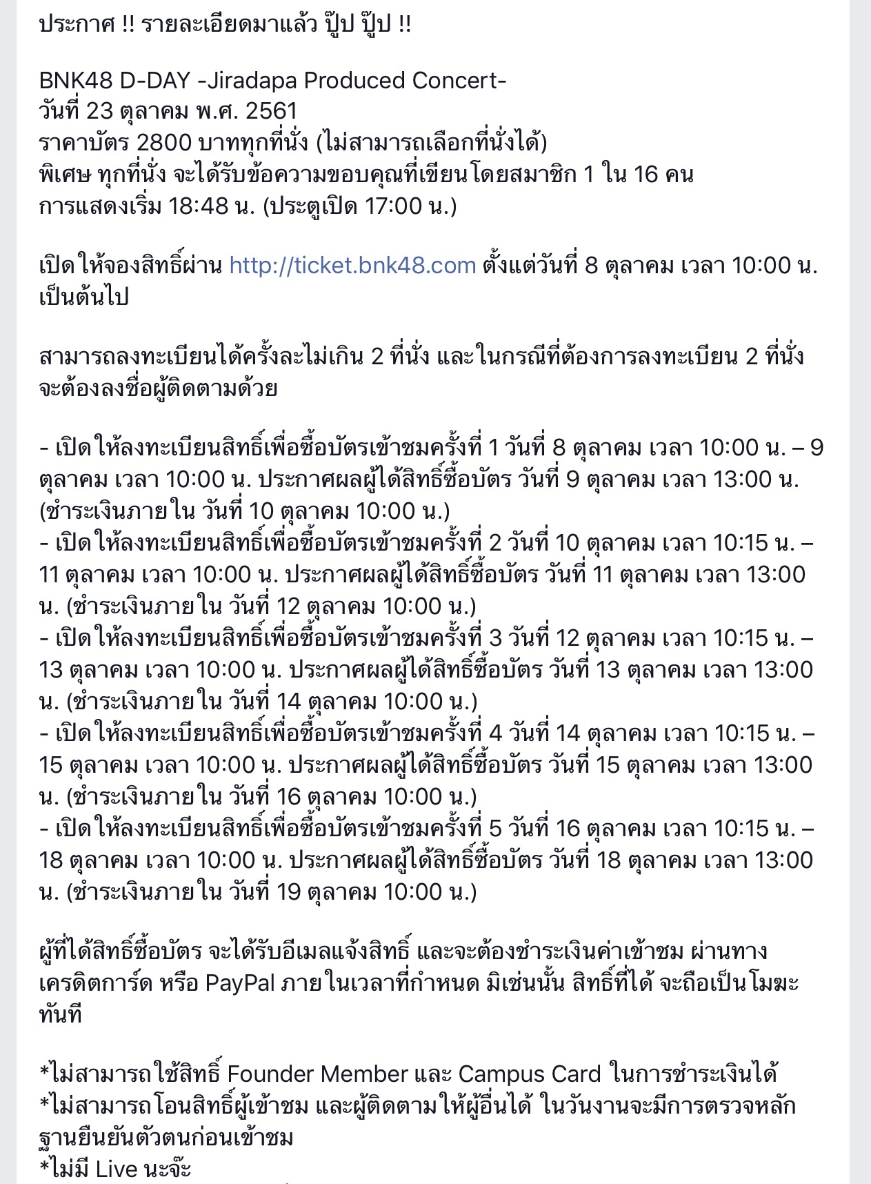 รวมทั้งบัตรมีราคาเดียว คือ 2800 บาท เลือกที่นั่งไม่ได้ เพราะเป็นการสุ่ม และมีแค่ 1000 ที่นั่ง