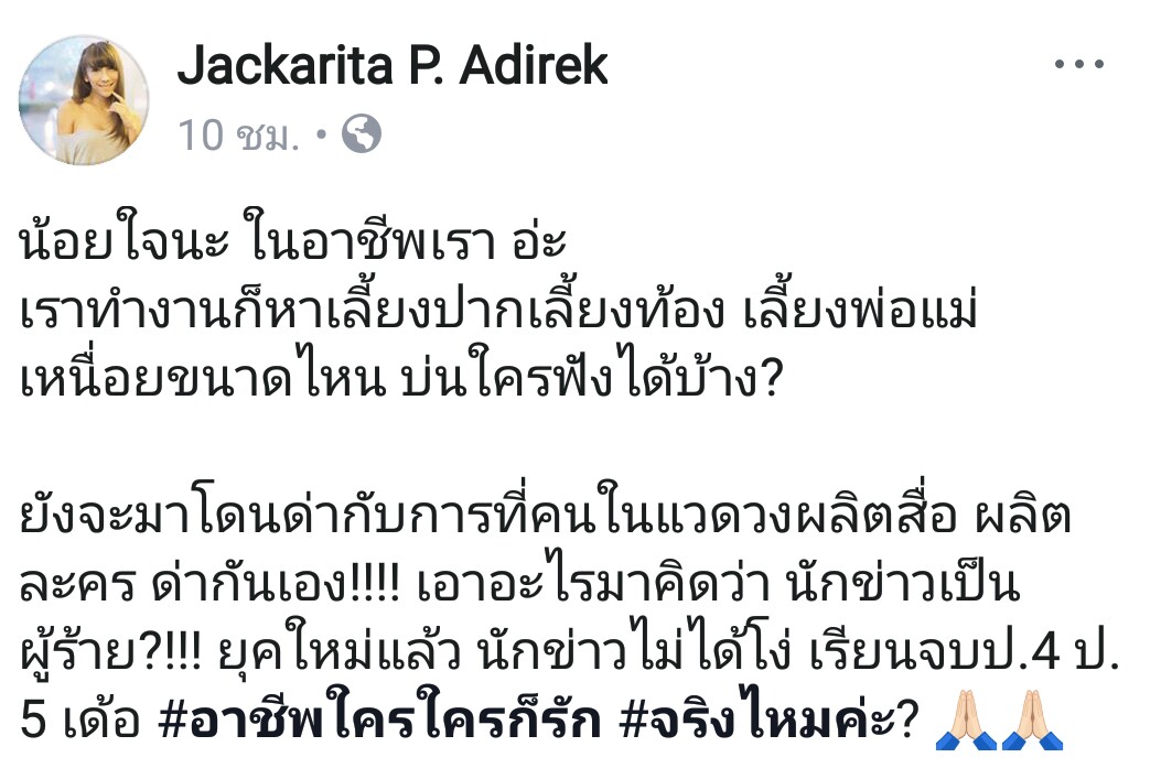 คิดยังไงกับที่แจ็คการีน ออกมาโพส #เลิกทำให้นักข่าวดูแย่ในทีวี