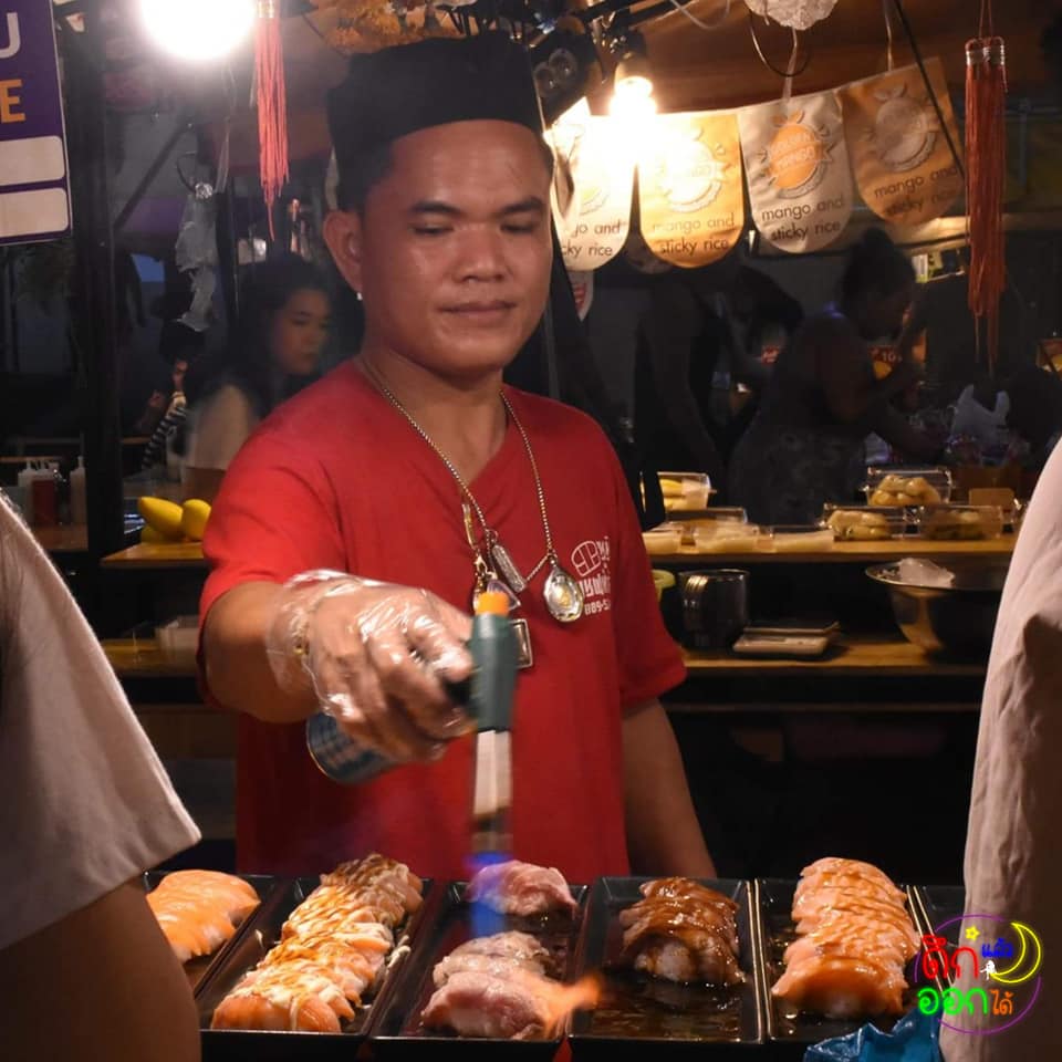 ร้านชูชิ ที่นี้มีแซลมอนซิ้นโตๆใหญ่ๆสดๆสีส้มน่ากิน ทั้งมีแบบชูชิแซลมอนแบบซาชิมิ และแซลมอนรมไฟหนังไหม้ๆโดนไฟหน่อยๆกลิ่นหอมยั่วยวนใฟ้ได้อยากลิ่มลองกันทุกคนค่ะ และนอกจากชูชิหน้าแซลมอนแล้วก็ยังมีชูชิหน้าอื่นๆอีกมากมายให้เลือกทานกันอีกมากค่ะ ในราคาที่แสนถูกถูกถูกถูกมาก อยากให้ทุกคนได้ไปลิ้มลองรสชาติและบรรยายกาศของตลาดกันจริงๆเลยค่ะ