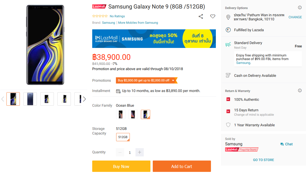 samsung galaxy note 9 512gb ลงขาย lazada แล้ว