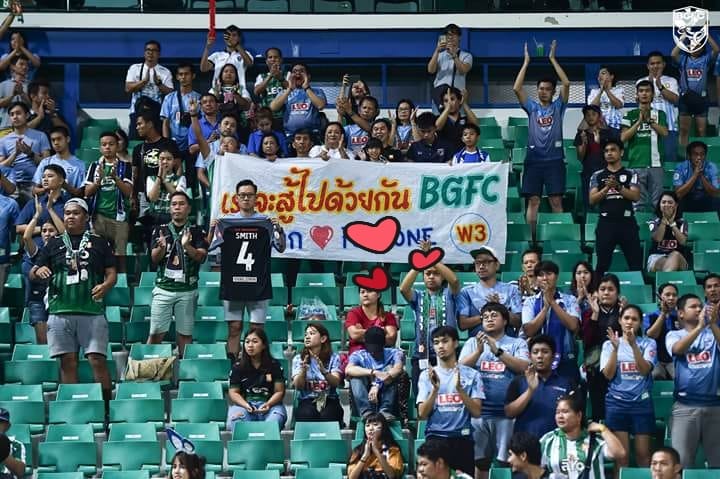 อยู่ตรงนี้นะ แฟนบอลไม่ไปไหนหรอก ถึงแม้ว่าครั้งนี้มันจะยากเหลือเกิน ไม่อยากกล่าวโทษใครหรือเหตุผลอะไรที่ทำให้เราต้องดำเนินมาถึงจุดนี้ เราไม่โทษนักฟุตบอลของเราหรอก มันคงยากเกินไป