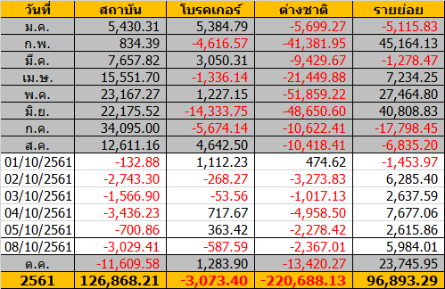 Sinthorn Summary 24/10/2561 : ต่างชาติขายสุทธิ -3,975.92 ลบ.