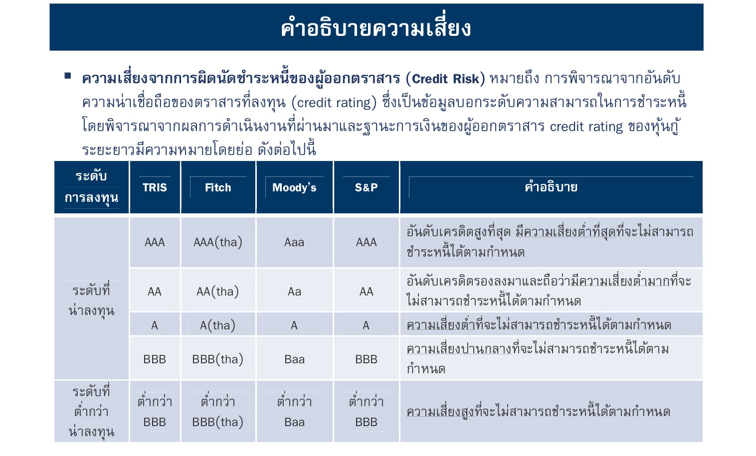 (ความจริง ถ้าดูจากเรตติ้งMoody,s ที่ได้ ก็เหมือนไม่จะค่อยเสี่ยงมากเท่าไหร่