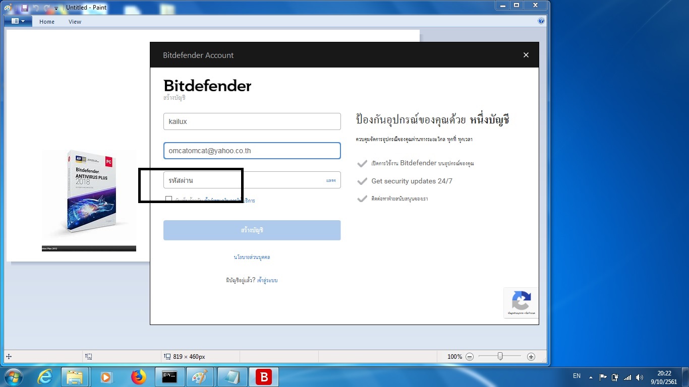คลิก เข้า โปรแกรม bitdefender เเล้ว มี หน้าจอให้กรอกข้อความตามภาพ รหัสผ่าน ต้องกรอกระหัส อะไรครับ
