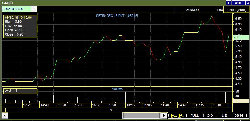ราคาออปชั่นพุท1050 ผันผวน ไวเมื่อเซท 50 เด้งแล้วตกตอนบ่ายอีก