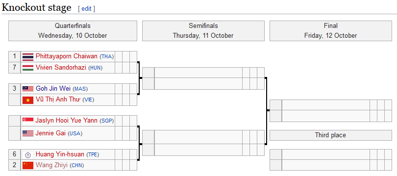 ส่วนน้องจิวคงจะเจอ Jin Wei GOH ในรอบ 4 คนสุดท้าย คงต้องพูดว่าน้องจิวเป็นรองในด้านประสบการณ์ เพราะ Jin Wei GOH หลังจากได้แชมป์เยาวชนโลกเมื่อ 3 ปีที่แล้วก็ลงแข่งระดับผู้ใหญ่มาอย่างโชกโชน น้องจิวจะได้เปรียบอย่างเดียวก็คือแรง เพราะ Jin Wei GOH เป็นคนที่มีพลังงานน้อย เหนื่อยง่าย กว่าจะเจอน้องจิวก็ต่างคนเล่นเป็นแมทช์ที่ 5 กันแล้ว พลังงานก็ต่างถดถอยลงไปทั้งคู่ ถ้าน้องจิวตียื้อให้ Jin Wei GOH เสียแรงเยอะๆ บางทีก็อาจชนะได้เหมือนกัน แต่ถึงจะแพ้น้องจิวก็ยังมีโอกาสได้เหรียญทองแดงเพราะคงจะเจอกับผู้ชนะระหว่าง Yue Yann Jaslyn HOOI กับ Jennie GAI ซึ่งไม่ใช่มือวางทั้งคู่