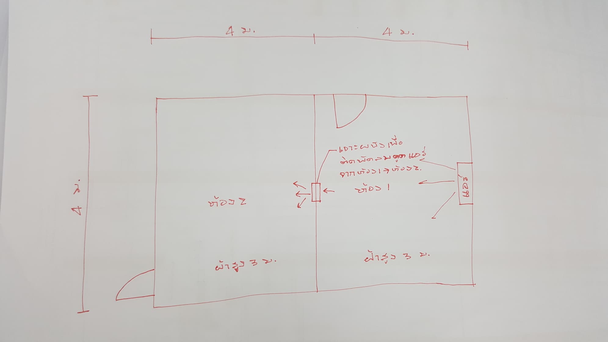 มีห้องนอน 2 ห้องแบบในรูป ถ้าต้องการติดแอร์แค่จุดเดียวที่ห้องนอน1