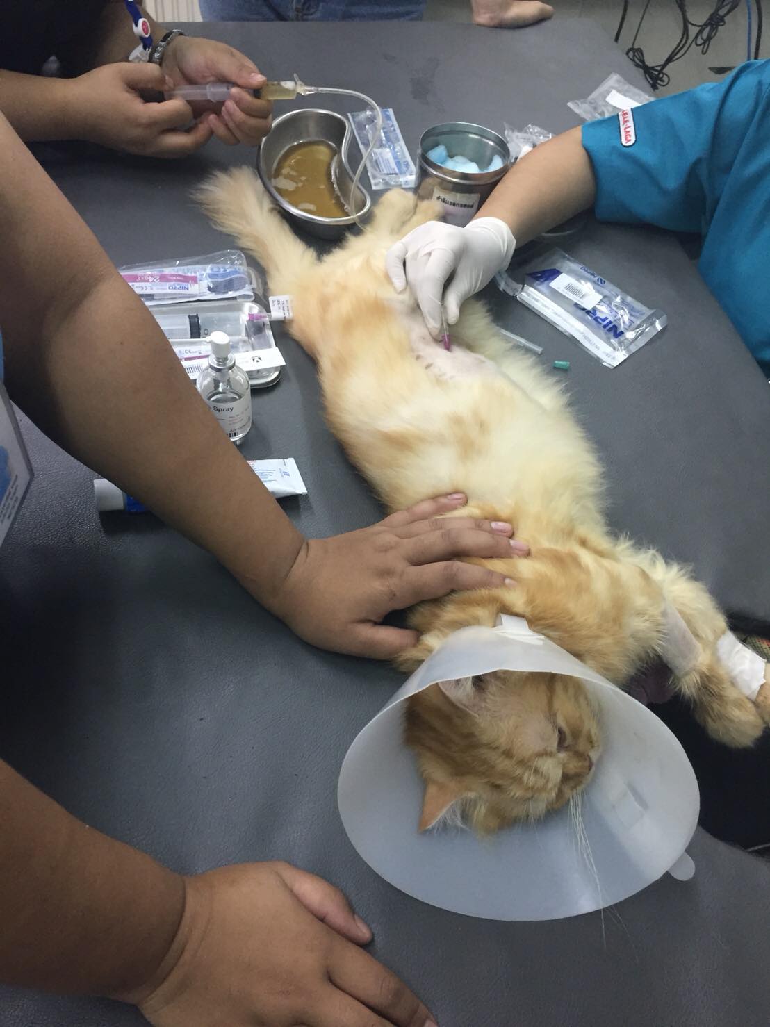 สวัสดีค่ะ พอดีมีน้องแมวจรมาอาศัยอยู่โกดังข้างบริษัท และตอนนี้น้องกำลังป่วย พาไปหาหมอที่คลีนิคแล้ว หมอแจ้งว่ามีลูกแมวตายในท้อง และต้องผ่าตัดเนื่องจากมดลูกอักเสบ อยากทราบว่ามีคลีนิคหรือ รพ. ไหนที่