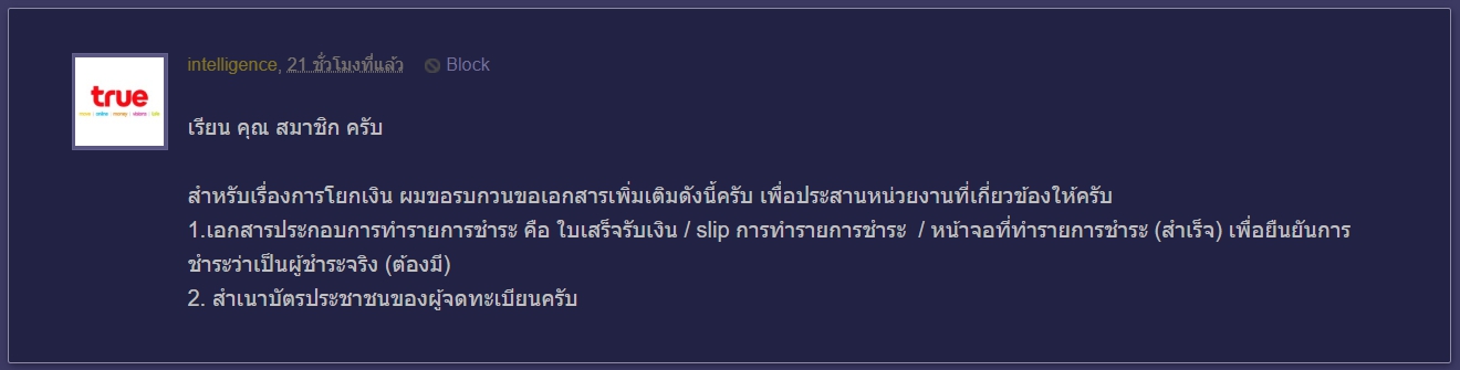 1. ตอนนี้ผ่านมา 15 วันแล้ว ทางทรูเพิ่งจะมาขอเอกสารย้อนหลัง หลังไมค์