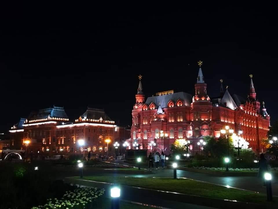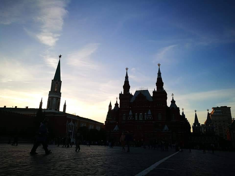 หลังจากซื้อบัตรเสร็จเรียบร้อยก็เดินทางกันเลย ทีมเราไปถึงจัตุรัสแดงประมาณ 5 โมงเย็น แต่พากันหลงวนไปมา ตั้งแต่หาทางออกจากสถานี ออกก็ผิดทางถามคนก็พูดอังกฤษไม่ได้ คนที่นี่พูดอังกฤษน้อยมากจริง ๆ (แอปกูเกิ้ลช่วยได้จ้า) วนไปมากว่าจะถึงจตุรัสแดงก็เกือบหกโมง แสงกำลังสวยเลยทีเดียว ก็ถ่ายรูปกันจนเพลิน ชมแต่ด้านนอกก็รู้สีกว่าคุ้มแล้ว สวยมากจริง ๆ