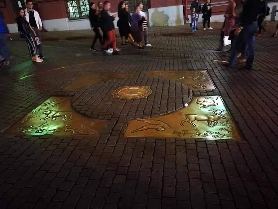 ระหว่างเดินไปห้างจะผ่านจุดโยนเหรียญเสี่ยงทาย ซึ่งอยู่หน้าซุ้มประตู Voskresensky gate ที่จะเข้า Red Square ก่อน ณ จุดนี้นับเป็นหลักกิโลเมตรที่ 0 เป็นจุดที่ถนนสายสำคัญทุกสายของมอสโคว์จะวิ่งออกจากจัตุรัสแดงนี้