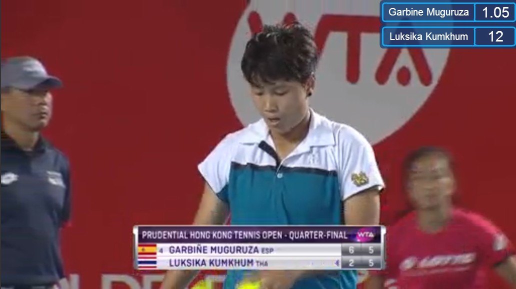 ลักษิกา คำขำ มือ 105 โลก แพ้ Garbine Muguruza (ESP , มือ 13 โลก) [4] 0-2 Set 2-6 5-7