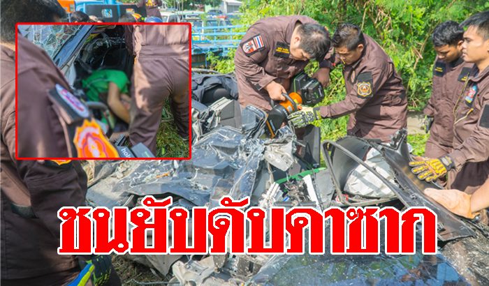 ‘สตั๊นท์แมน’ ละครดัง ควบเก๋งอัดรถบรรทุกพังยับ ดับคาซาก
