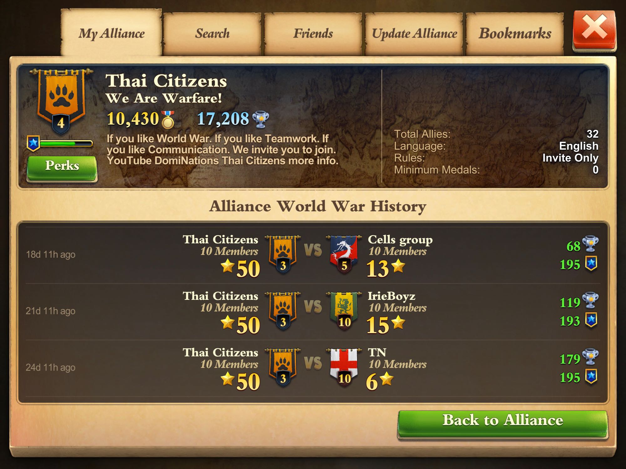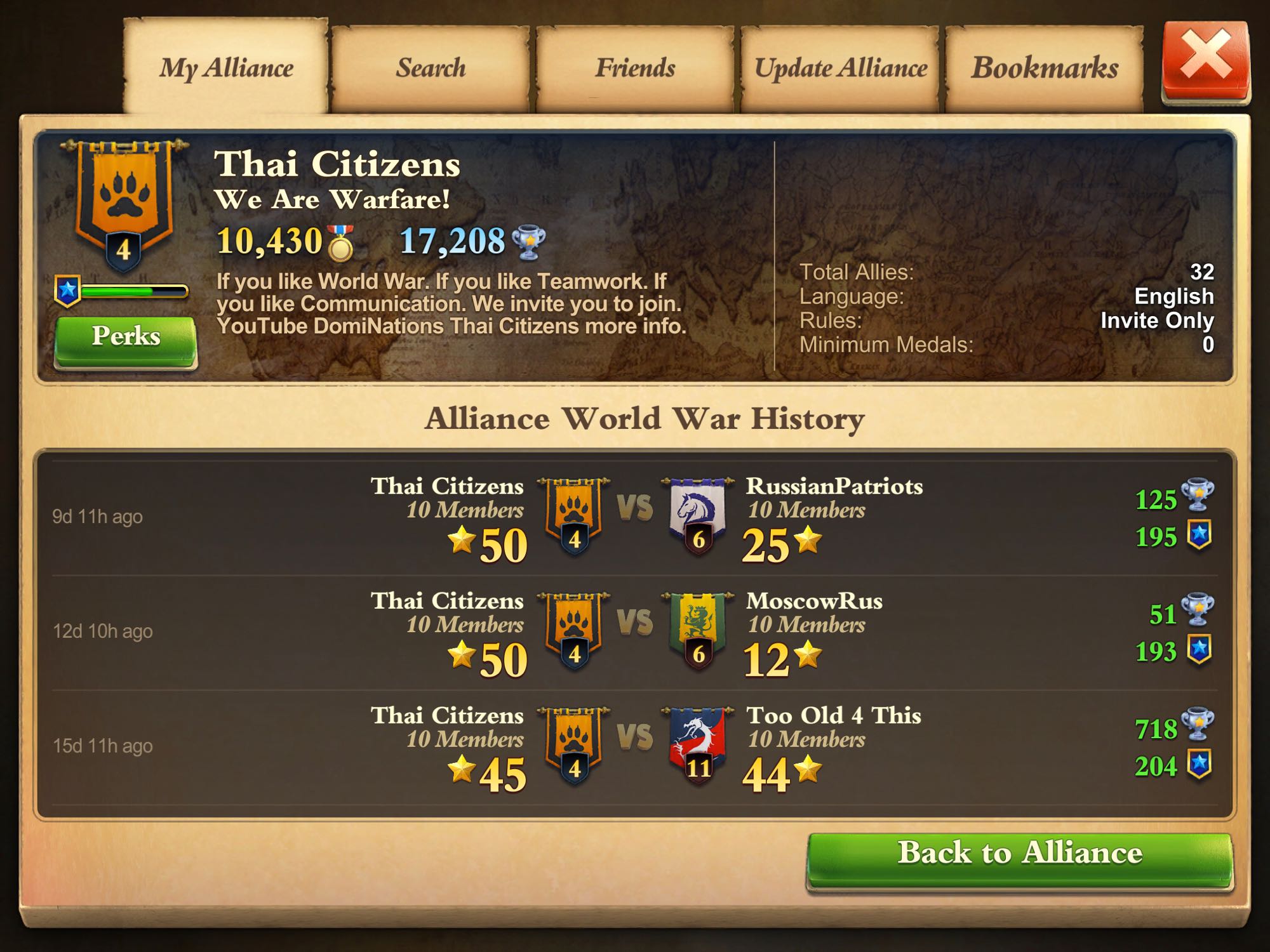Thai Citizens เป็นกิลด์สงคราม วางแผนการเล่นเป็นทีมเน้นการสื่อสาร ยินดีต้อนรับทุกๆท่านมาร่วมทีม โดยเฉพาะอย่างยิ่งคนไทยที่กระจัดกระจายอยู่กิลด์ต่างชาติ ขอเชิญมาร่วมทีมเราครับ