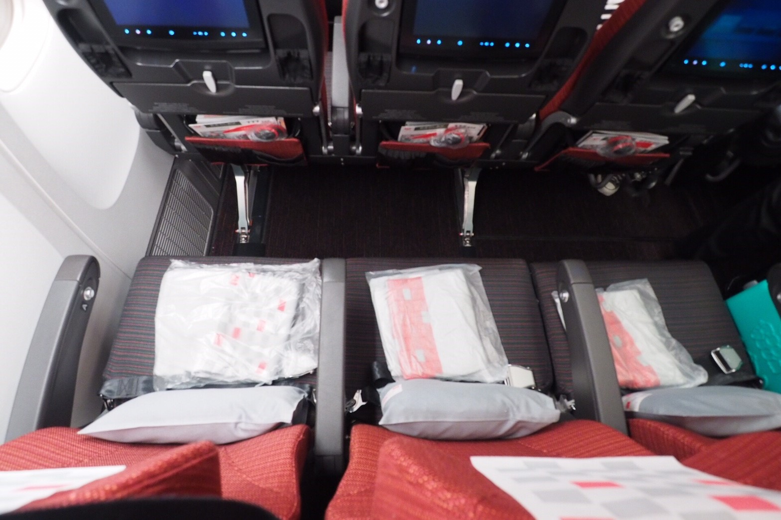 ความเป็น World’s No.1 Economy Seat นั่นคือดีงามเพราะที่นั่ง JAL SKY WIDER กว้างขวางใช้ได้เลยทีเดียว (84-86 cm.) เบาะก็กว้าง (48 cm.) แบบว่ามีที่ขยับได้ 555 ที่เบาะจะมีหมอน ผ้าห่ม และหูฟังวางไว้ให้เรียบร้อย