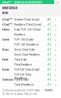 - เป็นเพลงที่ 12 ของปี 2018 ที่สามารถทำสถิติ Certified Perfect All-Kill (PAK) ได้ [Spoil] คลิกเพื่อดูข้อความที่ซ่อนไว้iKON - Love Scenerio [x4 weekly | 204 hours] X