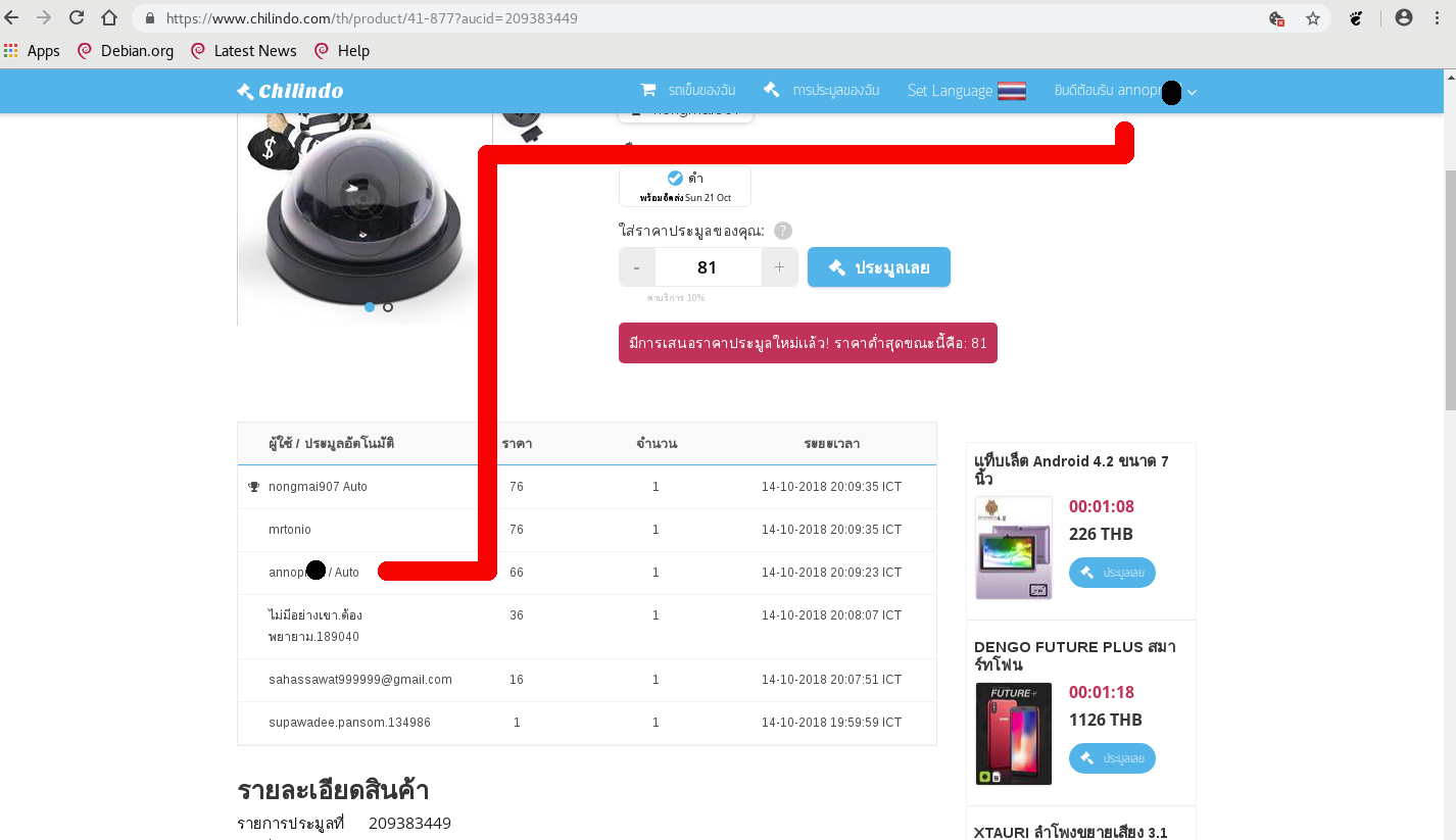 ผมแค่กด 2 ครั้ง ในการประมูล แต่ชื่อผมเป็น auto เฉยเลย