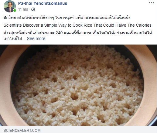 Rice Cooking with low calories .. นักวิทยาศาสตร์ค้นพบวิธีง่ายๆ ในการหุงข้าวที่สามารถลดแคลอรี่ได้ครึ่งหนึ่ง