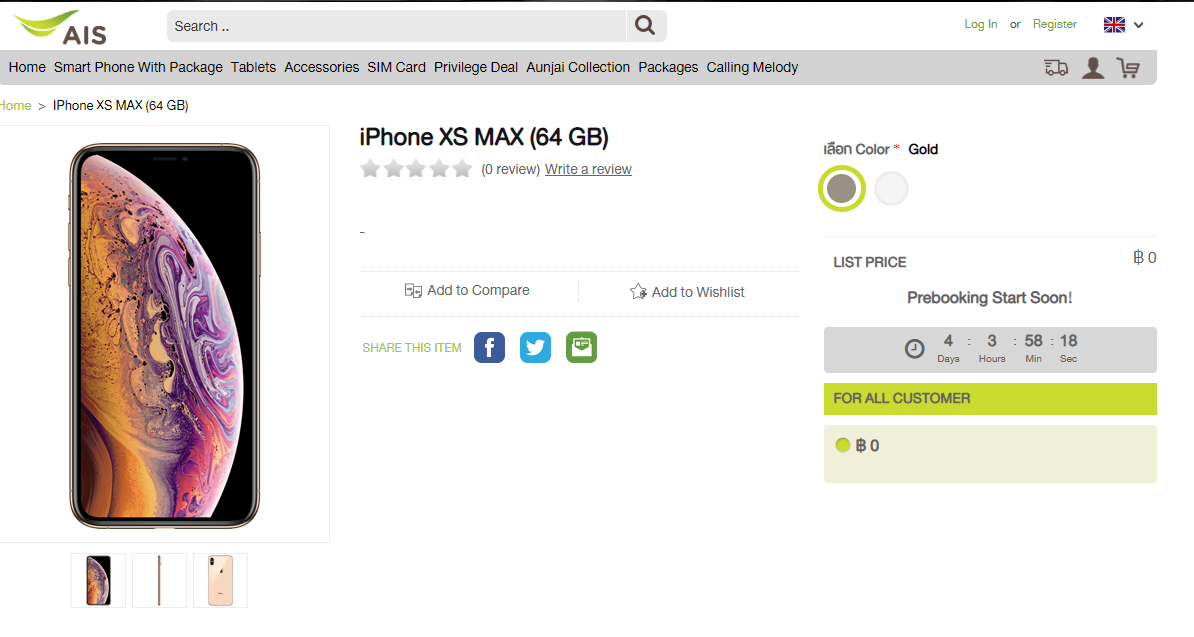 ผมเป็นหนึ่งในคนที่ต้องการจอง iPhone XS Max เครื่องศูนย์ AIS และรอเวลาจองในเวลาที่เปิดจองทันที เพราะซื้อทุกปี หมดเร็วทุกปี ก็เตรียมการทุกอย่าง รีเฟรชเว็บจองเรื่อย ๆ ตั้งแต่ 13:59 น. จนถึงเวลาตามที่ประก