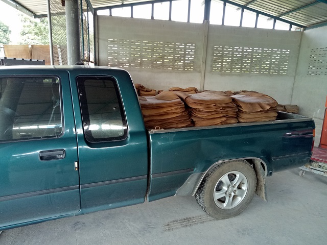 ยกยางแผ่นขึ้นรถเรียบร้อยแล้วพร้อมออกเดินทาง