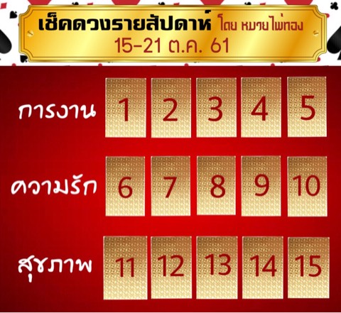 เช็คดวงรายสัปดาห์ 15-21 ต.ค 2561 โดย หมวยไพ่ทอง