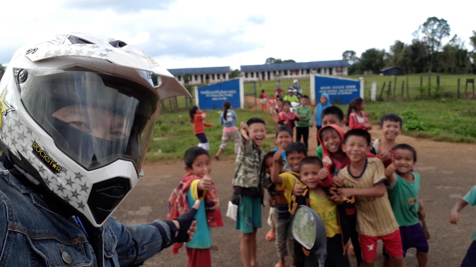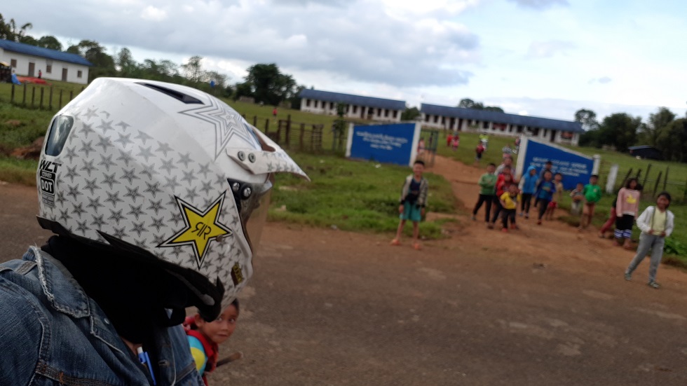 บ่ายสามโมงครึ่งมาถึงปากซองโรงเรียนกำลังเลิก พอเห็นรถมอไซค์แปลกๆมาจอดเด็กๆดูจะชอบกันมากวิ่งมาเล่นด้วย