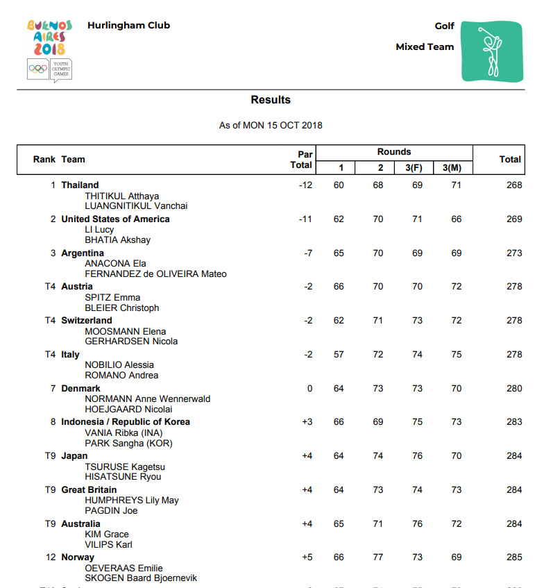เชียร์สด กอล์ฟ Youth Olympic Games ประเภท Mixed Team Four-Ball Stroke Play วันที่ 2