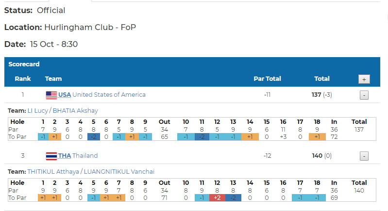 ใครจะไปนึกว่า ทีมอเมริกาคะแนนนำ -15 ในขณะที่ทีมไทย มีคะแนน -8 ไทยจะมีโอกาสชนะได้