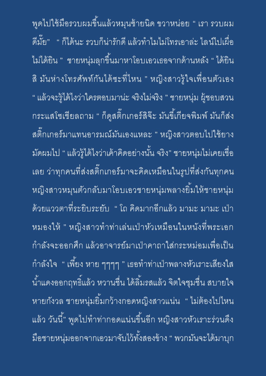 ........เบา ๆ นะครับ เรื่องนี้ จริง ๆ แล้ว เรื่องรัก ๆ นี่ต้องเขียนกันยาว ๆ แค่วันละคู่นี่ เล่ากันได้เป็นปีเลยละ ผิดพลั้งไป อภัยด้วยครับ......