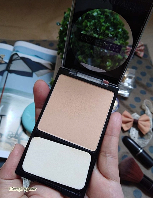 ด้านในตลับเค้าจะเป็นแบบชั้นเดียว แบ่งเป็นตัวแป้งและพัฟ (อันเล็กจิ๋ว ที่ใช้งานค่อนข้างลำบากหน่อย) ข้อดีคือพกพาสะดวกเพราะตลับเค้าเล็กและบาง