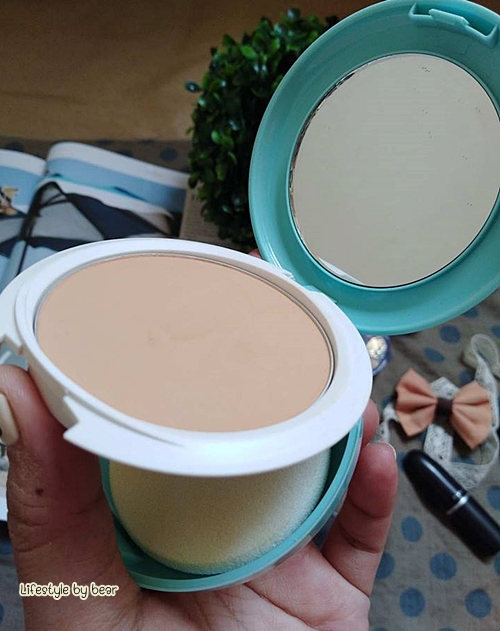 ตลับสีฟ้าสดใสมาแบบ 2 ชั้นมีแป้งและพัฟให้ในตัว พัฟเค้าจะนุ่มแต่ไม่แน่นมากเท่าไหร่ แต่ก็จับถนัดมืออยู่นะ