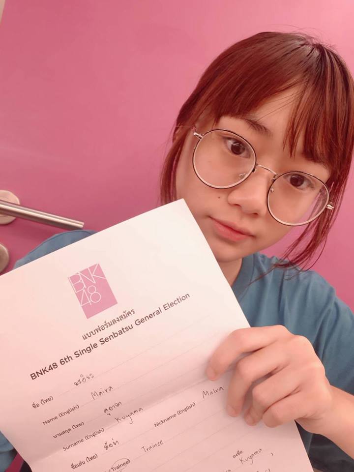 ทางเพจofficialได้อัพเดทคนสมัครเลือกตั้งล่าสุดแล้วครับ ล่าสุดนั่นก็คือ มะอิระ คูยามา! ผู้มีวินัย สตรองและเซ็กซี่ที่สุดในBNK48 อันดับไม่หวังหวังไก่ทอด!
