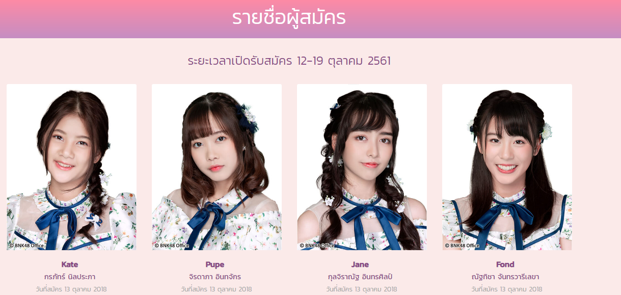 รายชื่อคนที่สมัคแล้วตอนนี้อัพเดทจากเวปไซท์>>> https://election.bnk48.com/