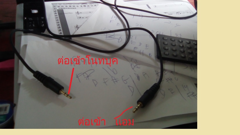 ต่อ โนทบุค กับ เเอมเล็ก nux เพื่อขยายเสียง พว่ง ระหว่าง โนทบุค กับ รู cd / mp3